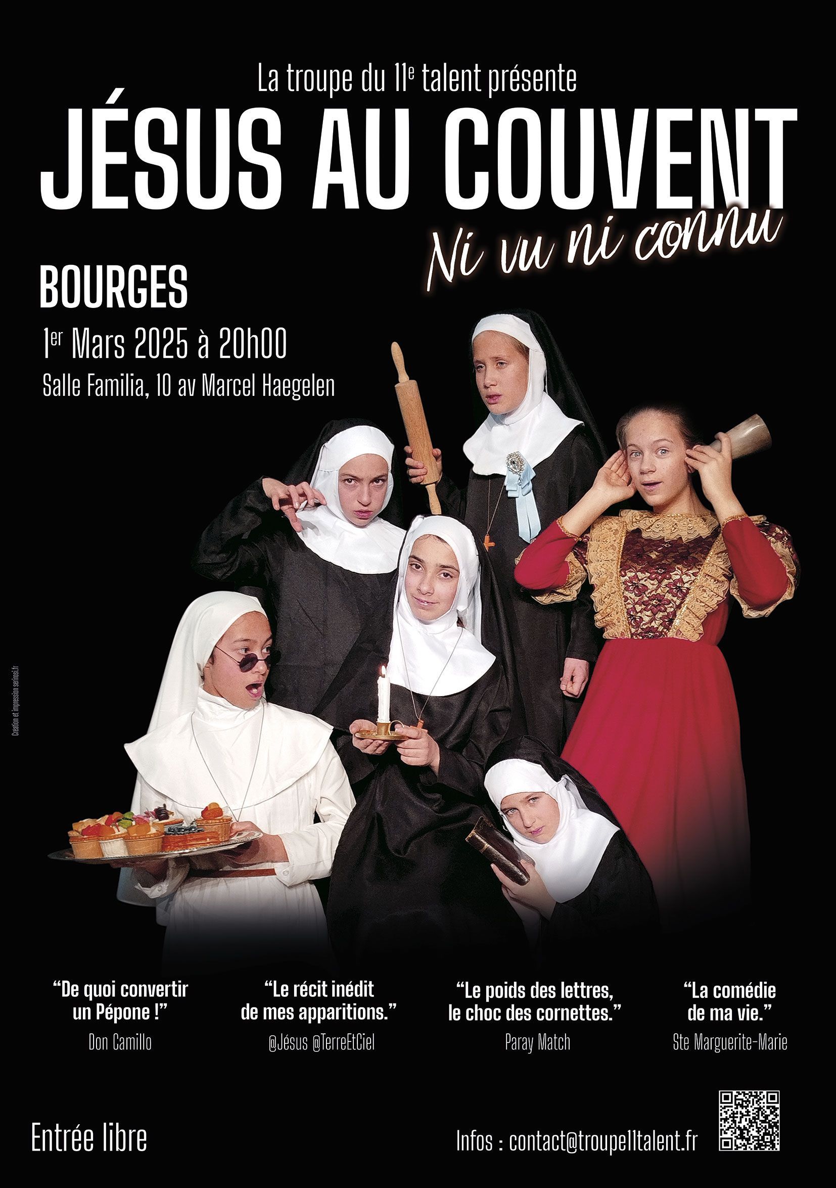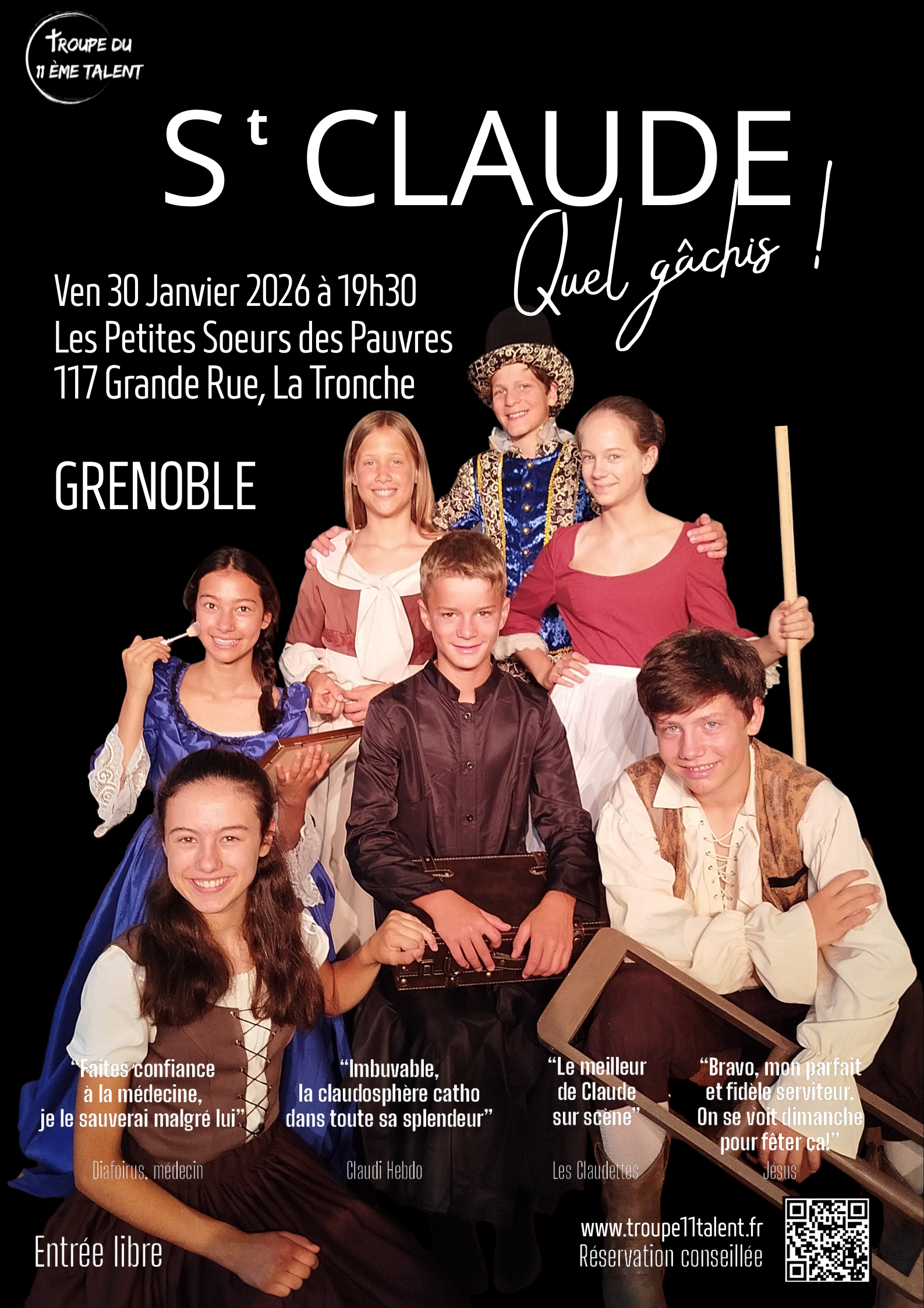 Depuis 2018, la Troupe du 11ème Talent produit des pièces de théâtre bibliques, historiques et hagiographiques. Nos créations artistiques sont des comédies drôles et profondes, accessibles à un public familial. Elles mêlent théâtre et comédie musicale.
