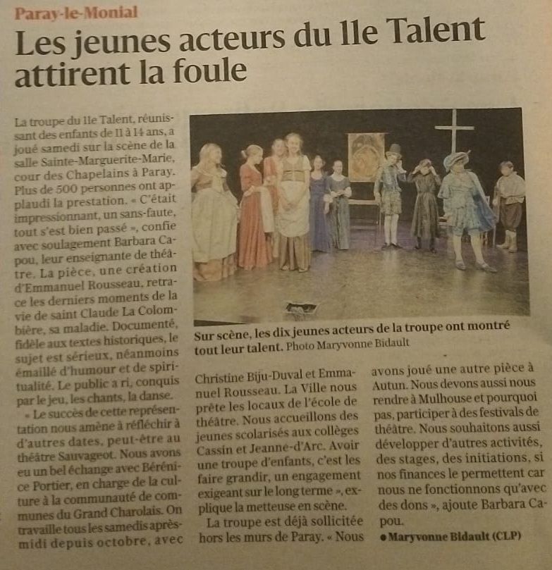 Article avant le spectacle du 15 février 2025 à Paray le Monial